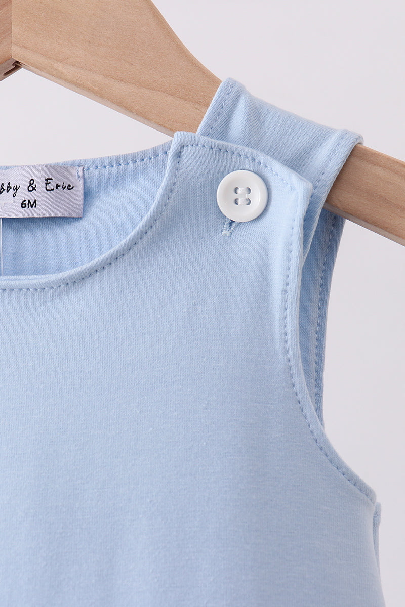 Dive into fun with this adorable blue shark applique bubble! Perfect for little ones who love ocean adventures, this playful piece features a charming shark design that sparks imagination. The soft bubble silhouette offers comfort and ease of movement, making it ideal for playtime or casual wear. Watch your child's face light up as they rock this whimsical underwater-inspired look. A delightful addition to any kid's wardrobe that celebrates their love of the sea!