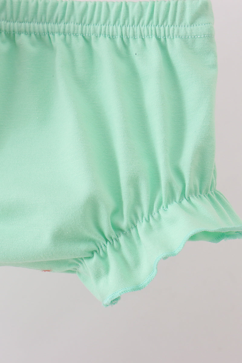 Twirl-ready comfort meets garden-fresh style! This charming bloomer set features delicate green florals with smocked detailing and playful ruffles that dance with every movement. Perfect for little ones who love to explore, the soft fabric and elastic waistband ensure all-day comfort and freedom to play. A sweet addition to any wardrobe that celebrates childhood joy and effortless style.